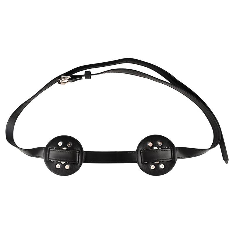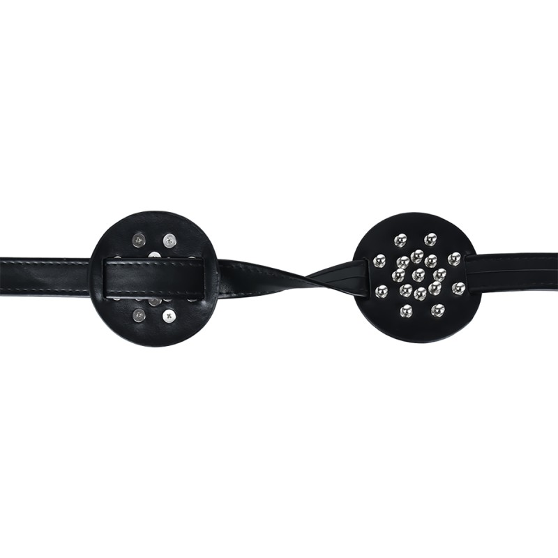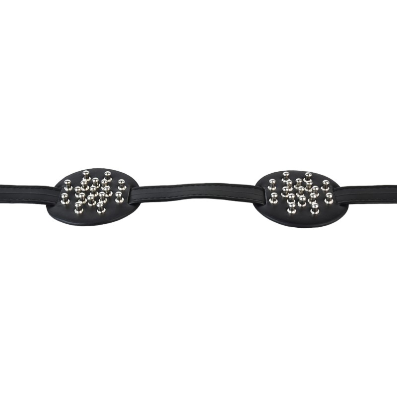 Ervaar een combinatie van stijl en sensatie met deze Borstbinder met gesloten midden en afgeronde noppen. De platen zijn uitgerust met metalen knopjes in het midden, wat zorgt voor een gelijkmatige en milde druk op de huid. Perfect voor wie op zoek is naar speelse prikkeling zonder scherpe intensiteit.