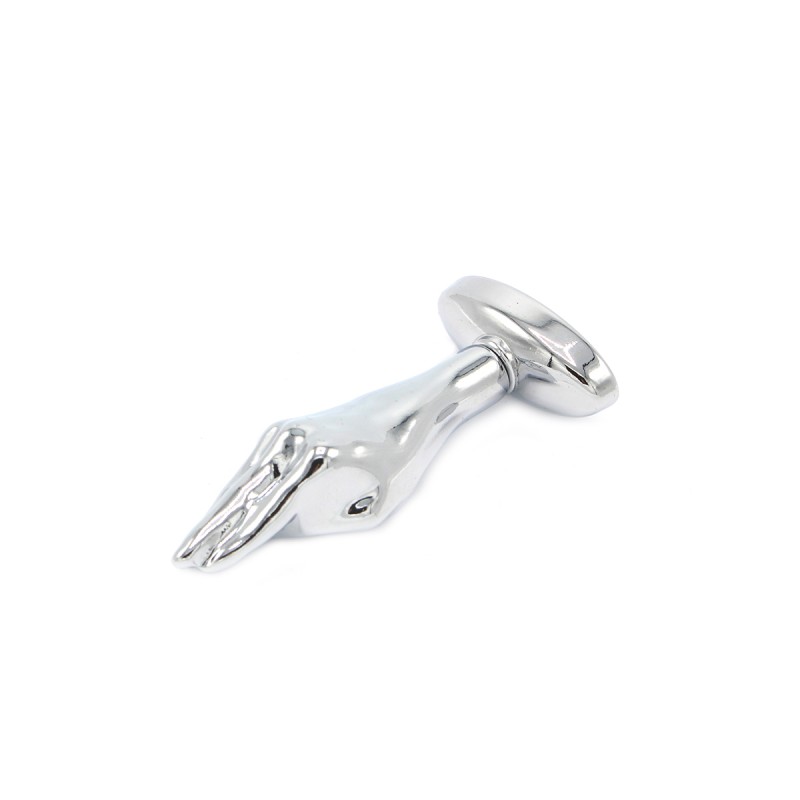 Deze stalen buttplug met hand en siersteen is super kinky en elegant tegelijk! De hand refereert natuurlijk naar fistfucking, maar het kleine formaat en de transparante siersteen maken deze buttplug super sexy en verleidelijk. De taps toelopende vorm en smalle hals zorgen ervoor dat dit speeltje gemakkelijk in te brengen en te dragen is. Gebruik hierbij wat glijmiddel om het nog soepeler te laten verlopen. De vlakke basis houdt de RVS buttplug keurig op zijn plek terwijl de blauw/groene siersteen prachtig schittert aan de buitenkant. Door de vorm van de steen is deze veel makkelijker en mooier om te dragen en te zien.