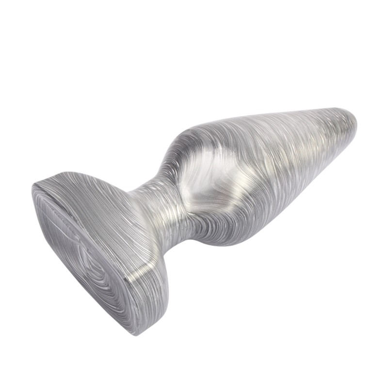 Wat deze collectie onderscheidt van alle andere, is het verbazingwekkende realistische zilvereffect dat schittert en schittert wanneer het licht van deze indrukwekkende dildo-plug weerkaatst.