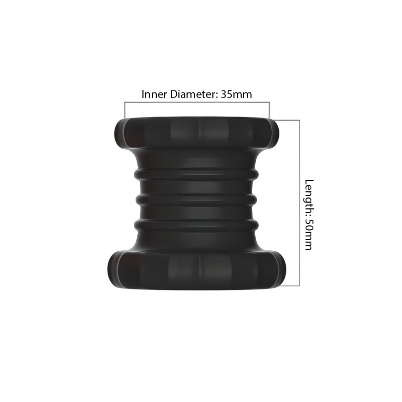 Vergroot je ervaring met deze Siliconen Cockring & Ballstretcher Ultra. Het geribbelde cilindervormige ontwerp biedt gelijkmatige druk rondom en een industriële uitstraling. De diepe ribbels aan de buitenkant zorgen voor een visuele eyecatcher en subtiele externe stimulatie, terwijl de rechte cilindervorm zorgt voor een consistente stretch en stevige grip.