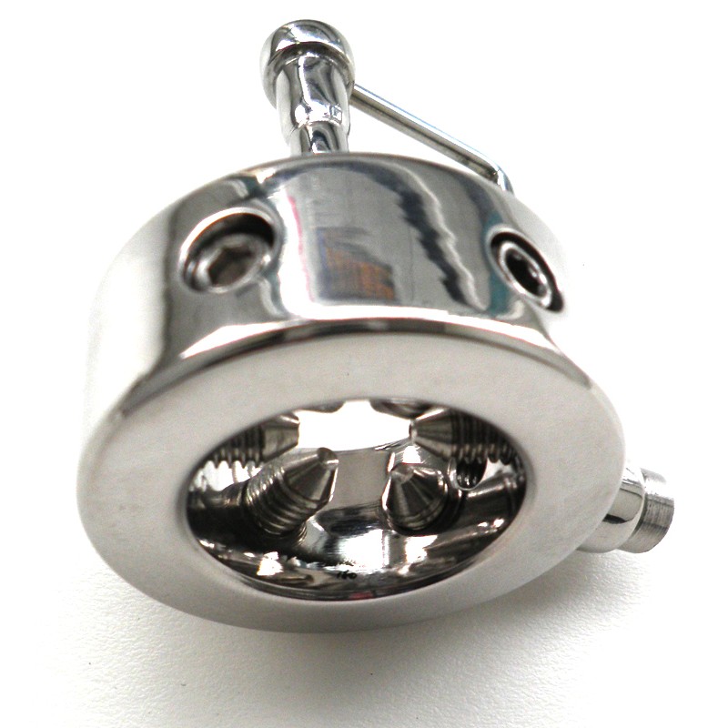De ring heeft 6 verstelbare spikes, die je met de meegeleverde inbussleutel kunt aanpassen. Draai de spikes eerst naar buiten (tegen de klok in) voordat je de ring over de eikel plaatst. Vervolgens breng je de holle penisplug in de plasbuis in. Eenmaal op zijn plaats, draai je de spikes langzaam naar binnen (met de klok mee) om de intensiteit naar wens aan te passen.