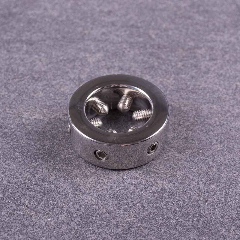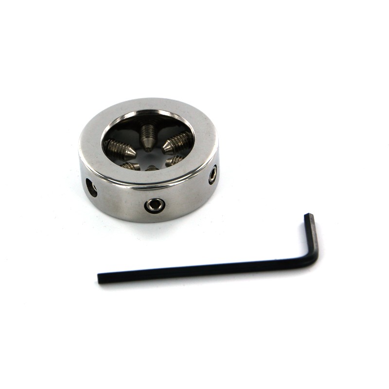Deze kleine, dikke penisring is niet geschikt voor de gevoelige zielen onder ons. Aan de binnenkant van de ring bevinden zich 6 spikes, die je naar jouw gewenste intensiteit kunt afstellen. Gebruik eenvoudig de meegeleverde inbussleutel om de spikes naar buiten te draaien door ze tegen de klok in te draaien, plaats de ring over de eikel van je penis, en draai de spikes met de klok mee om het gewenste pijnniveau te bereiken.