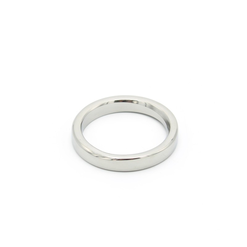 De Flat Cockring combineert een modern uiterlijk met een veilige pasvorm en heeft platte randen voor een strakke en eigentijdse stijl. Gemaakt van roestvrij staal, helpt deze niet-rekbare ring bij het behouden van een langere en stevigere erectie door de bloedstroom subtiel te beperken.