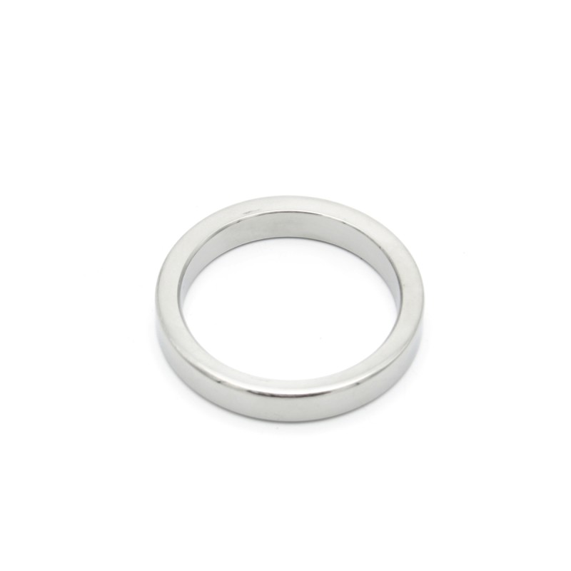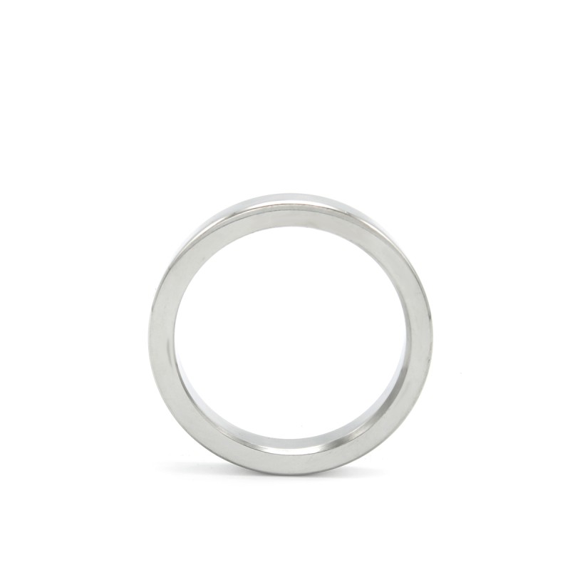 De Flat Cockring biedt een modern ontwerp met platte randen voor een stijlvolle en veilige pasvorm. Gemaakt van roestvrij staal, helpt deze niet-rekbare ring bij het behouden van een langere en stevigere erectie door de bloedstroom subtiel te beperken.