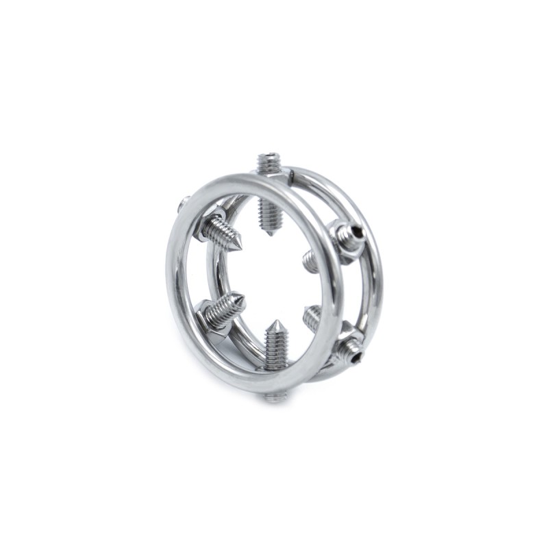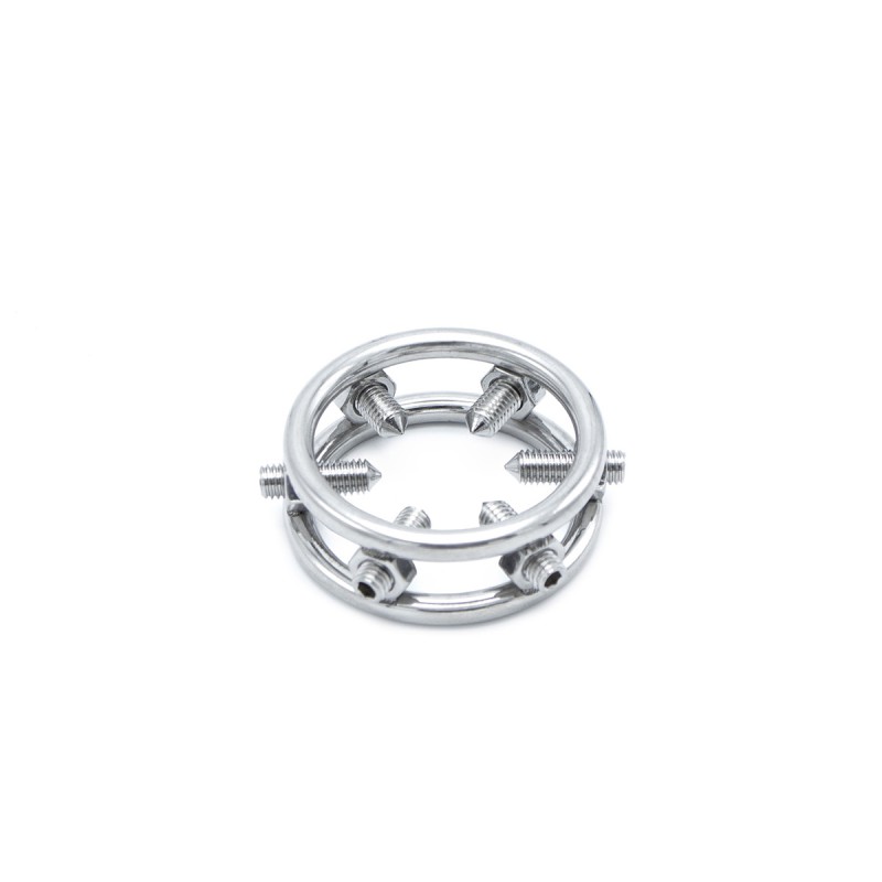Aan de binnenkant van de ring bevinden zich 6 spikes, draai de spikes eenvoudig naar buiten door ze tegen de klok in te draaien met de meegeleverde inbussleutel, plaats deze over het hoofd van uw penis en begin de spikes met de klok mee te draaien om een pijnniveau te krijgen dat geschikt is voor uw leuk vinden!