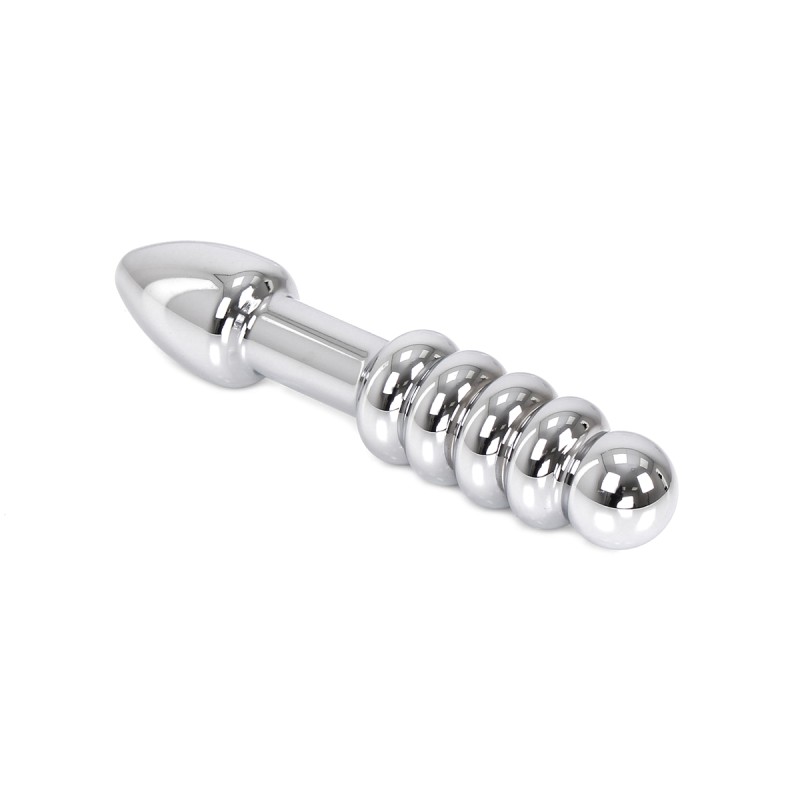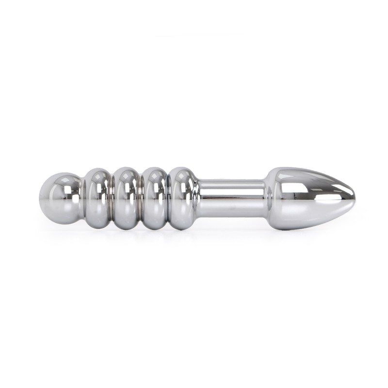 Deze elegante stalen dildo is speciaal ontworpen voor dubbelzijdig gebruik. Aan de ene kant heeft het een traditionele plugvorm en aan de andere kant 5 afgeronde balletjes die geweldige sensaties geven, zowel vaginaal als anaal.