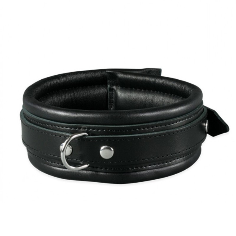 Aan de bevestigde d-ring kun je kettingen of touwen binden en je partner in verschillende posities dwingen. De binnenkant van de halsband is gevoerd met zacht leer.