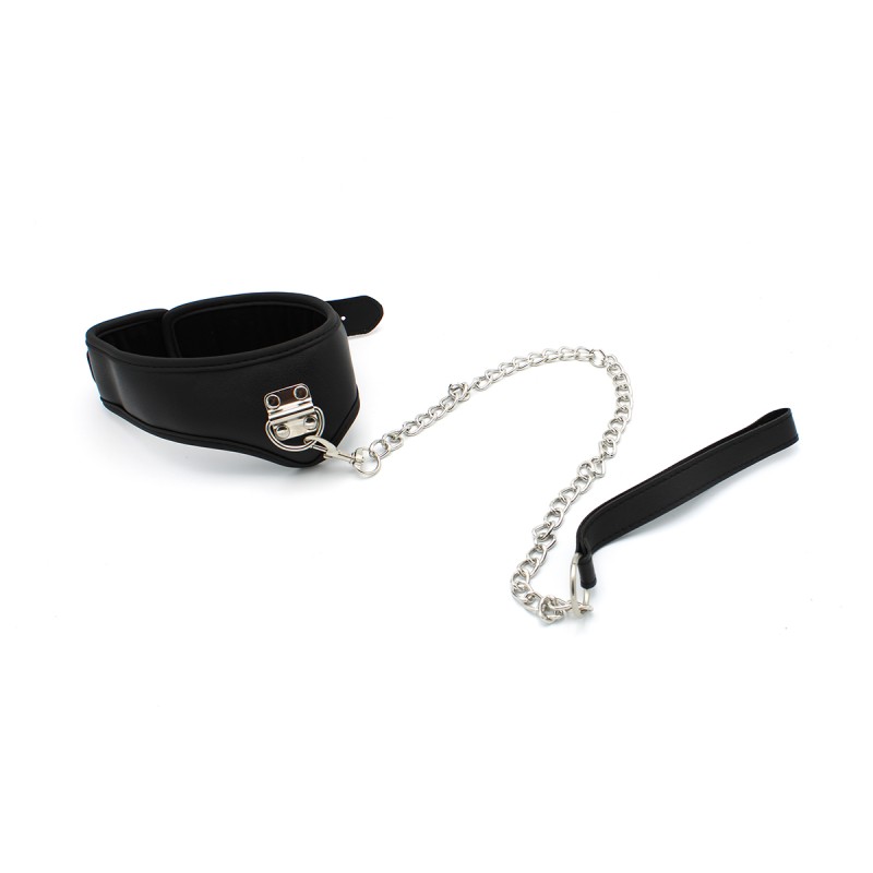 Deze eenvoudige maar stijlvolle Faux Leren Halsband wordt geleverd met een riem die eenvoudig aan de D-ring op de halsband vastklikt, wat zowel comfort als controle biedt. Perfect voor lichte bondage of om je look compleet te maken, en gemakkelijk aan te passen voor een nauwsluitende pasvorm.