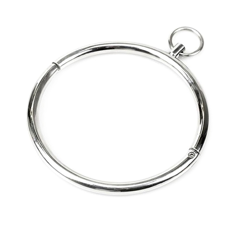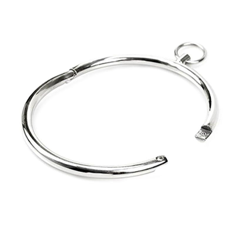 Deze handgemaakte roestvrijstalen slavenhalsband van Kiotos is ontworpen voor comfort en functionaliteit. Het gladde, gepolijste oppervlak en de afgeronde randen maken het comfortabel om te dragen, terwijl het gewicht zorgt voor een stevige en solide pasvorm. De voorste O-ring maakt het mogelijk om een riem, touw of andere bondage-accessoires te bevestigen, wat veelzijdigheid toevoegt aan je spel.