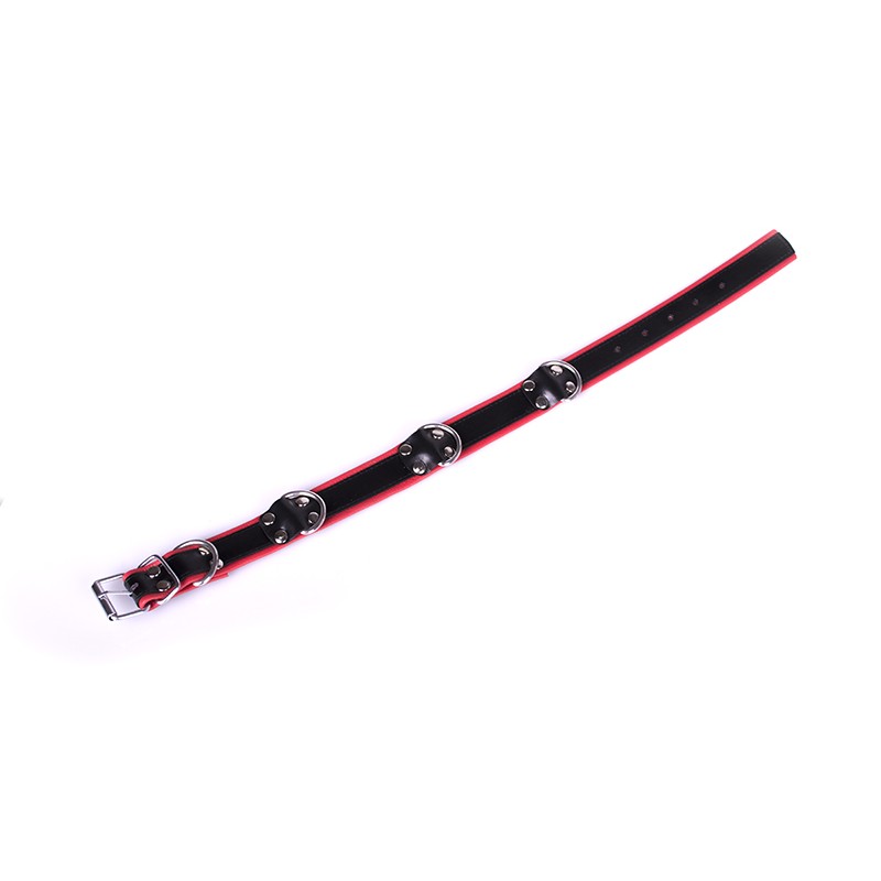 Zwarte&Rood Deluxe Bondage Halsband met D-Ringen