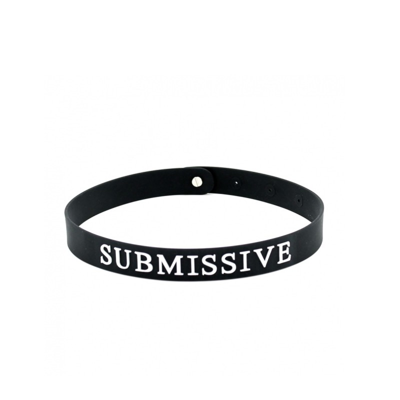 Deze simpele Siliconen Halsband geeft je een fijn gevoel door het gladde en zijdeachtige siliconen materiaal van de halsband. Deze halsband wordt geleverd met de naam SUBMISSIVE erop in een groot wit lettertype. Laat het spel beginnen! Gemaakt van hoogwaardig siliconen van het merk Kiotos X.