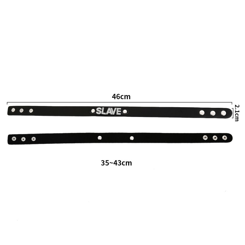Deze hoogwaardige PVC-leerachtige halsband is ontworpen om een duidelijk statement te maken, met een opvallend "SLAVE" naamplaatje dat de onderdanige rol van je partner benadrukt. Het duurzame PVC-materiaal biedt de uitstraling en het gevoel van leer met extra voordelen—het is eenvoudig schoon te maken, waterbestendig en behoudt een strakke, glanzende afwerking, zelfs bij regelmatig gebruik. Met verstelbare drukknopen kan deze halsband snel worden aangepast voor een comfortabele en stevige pasvorm, geschikt voor lange sessies of discreet dagelijks gebruik.
