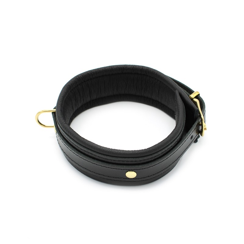 De glanzende zwarte lakafwerking geeft deze BDSM-halsband een luxe en elegante uitstraling, terwijl de gouden gespen een vleugje glamour en verfijning toevoegen. Het leren materiaal zorgt voor een comfortabele en veilige pasvorm, zodat je BDSM-spel even comfortabel als opwindend is.