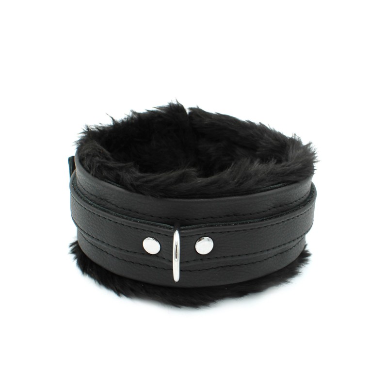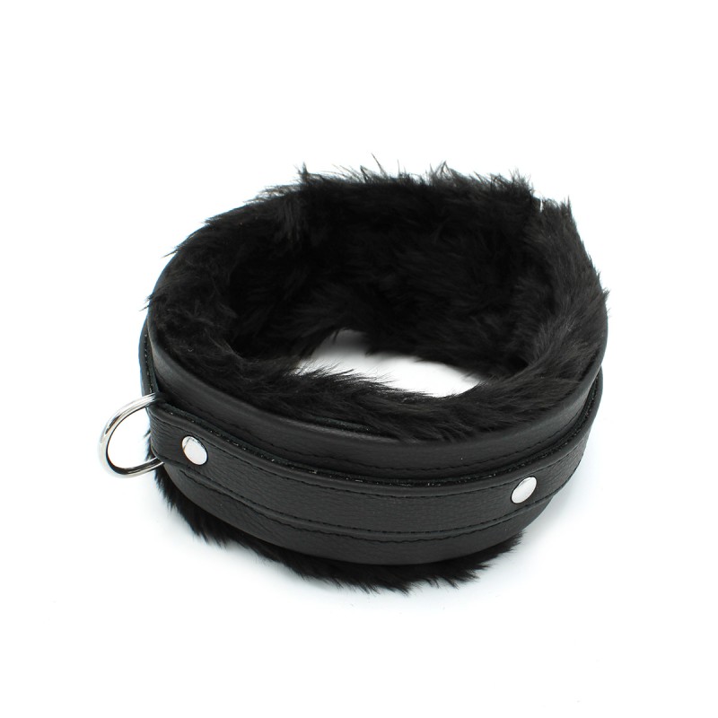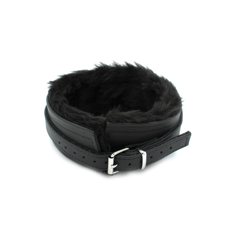 Fluffy Inside Black Leather Collar