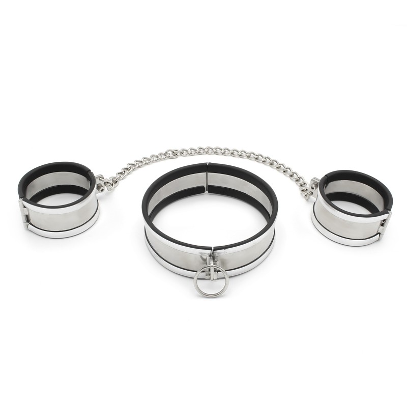 Breng je bondage-ervaring naar een hoger niveau met de Complete Roestvrijstalen Halsband & Handboeien Set. Gemaakt van hoogwaardig roestvrij staal, biedt deze set een stevige en veilige fixatie, ideaal voor restrictiespel.