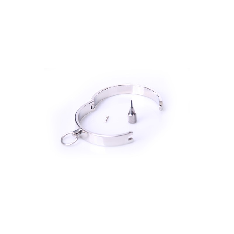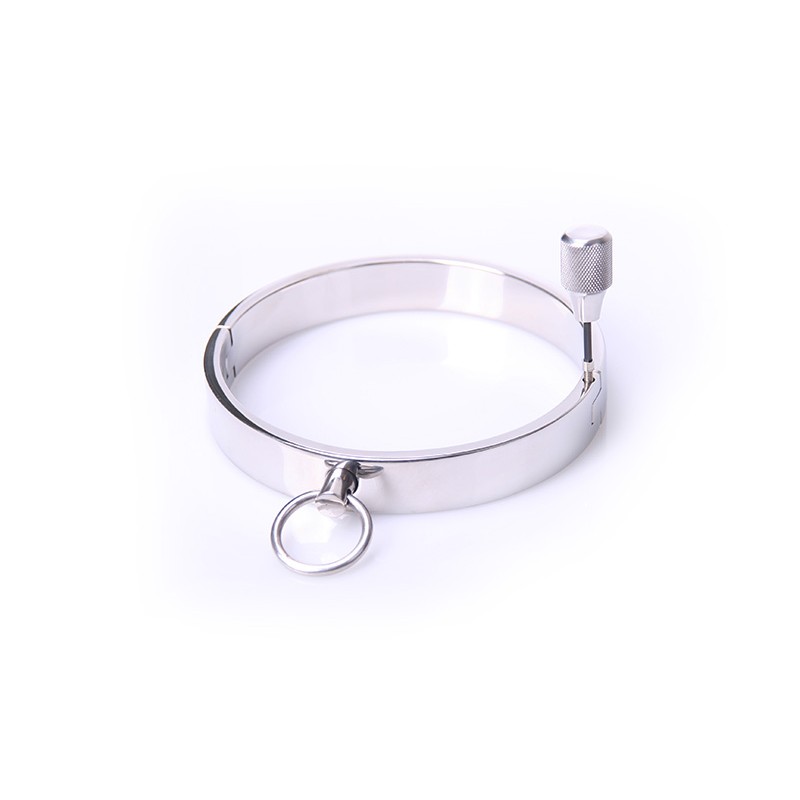 Houd je onderdanige in toom en onder controle met deze robuuste roestvrijstalen halsband. Ontworpen voor duurzaamheid en dominantie, sluit deze halsband veilig met een meegeleverde inbussleutel, waardoor hij stevig om de nek van je onderdanige blijft zitten. Het zware staal biedt een constante herinnering aan jouw controle, en houdt je sub precies waar je hem of haar wilt hebben.