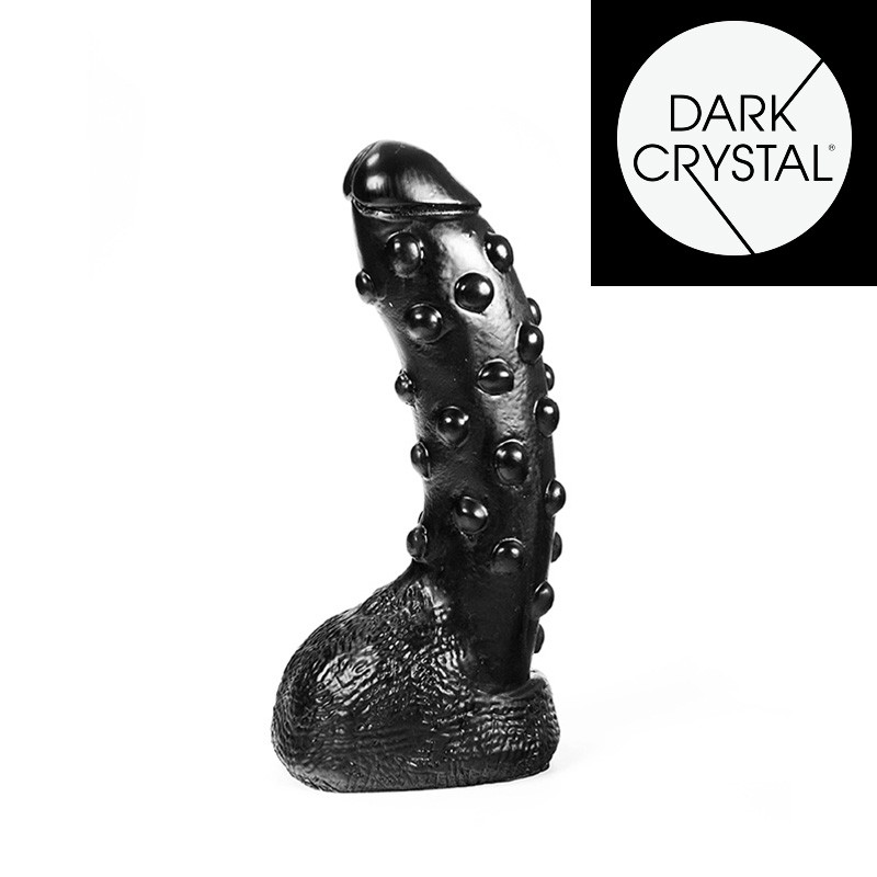 Deze Dark Crystal dildo is een zwarte dildo van goed formaat met een mooie eikel, genopte schacht die gebogen is en een balzak met een fijn structuur. Dit speeltje is heerlijk om jezelf of je partner mee te verwennen. Glijmiddelen gebaseerd op zowel water als silliconen kunnen hierbij gebruikt worden. Het is belangrijk de dildo goed te reinigen na gebruik. Voor het makkelijker inbrengen en het reinigen van de dildo adviseren wij onder andere de Kiotos glijmiddelen en Toycleaner. Elk speeltje is individueel strak verpakt in een transparante plastic beschermhoes. Niet-ftalaat - Cadmium en loodvrij.