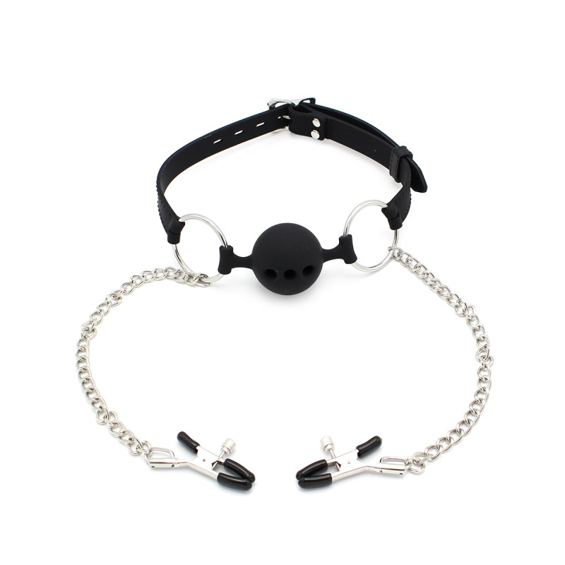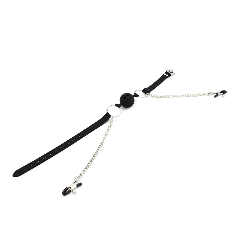 2-in-1 BDSM Ball-Gag met Tepelklemmen
