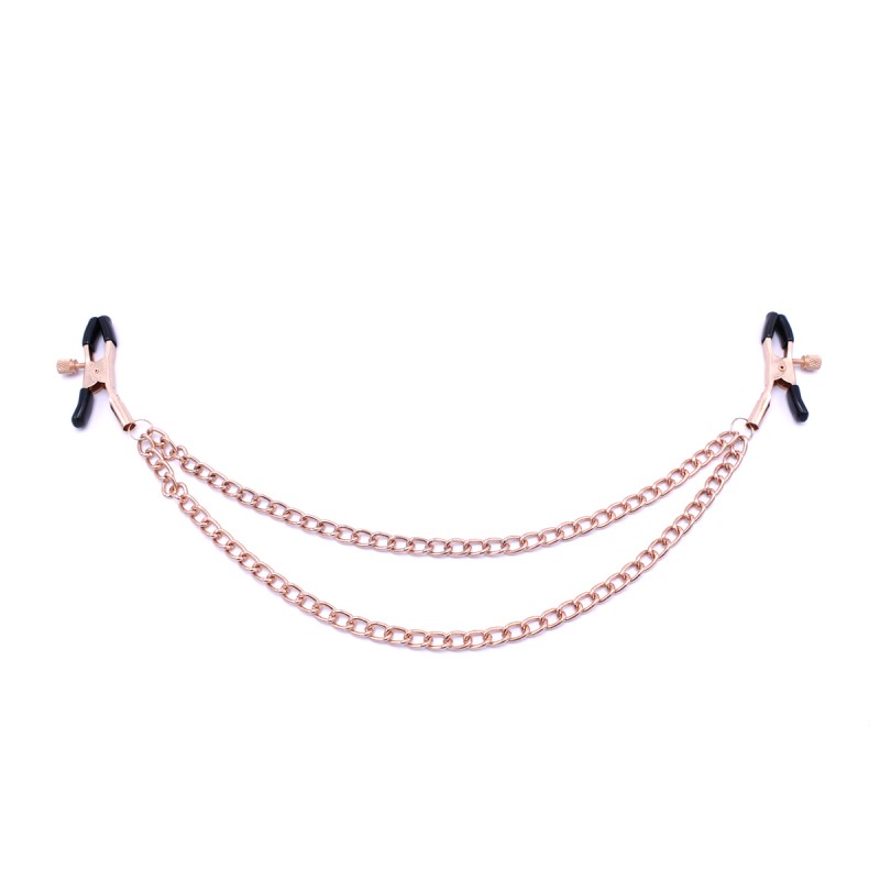 Rose Gouden Tepelklemmen met Dubbele Kettingen