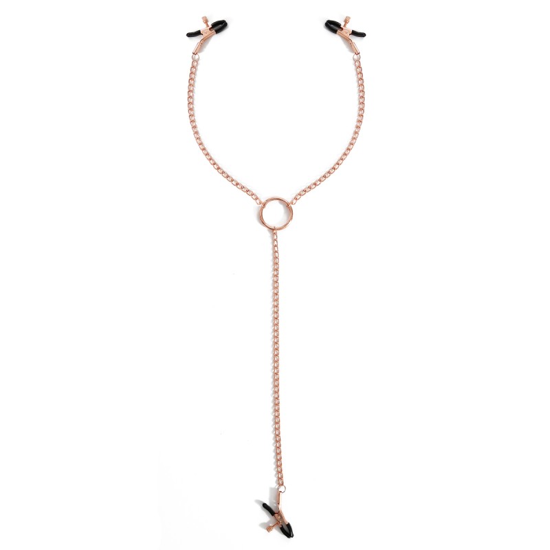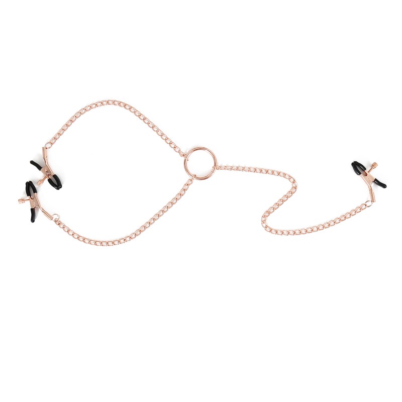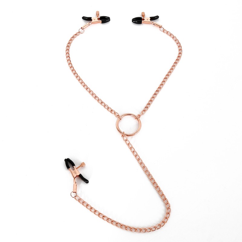Maak kennis met onze roségoudkleurige tepels en clitklemmen, elegant verbonden met bijpassende roségouden kettingen. Deze verleidelijke set combineert stijl en sensualiteit en belooft een boeiende ervaring voor degenen die zowel mode als passie zoeken. Verhoog uw productaanbod met dit verleidelijke accessoire, ontworpen om verlangens aan te wakkeren en onvergetelijke momenten te creëren. Ontdek de wereld van intieme elegantie met deze prachtige roségouden klemmen en kettingen.