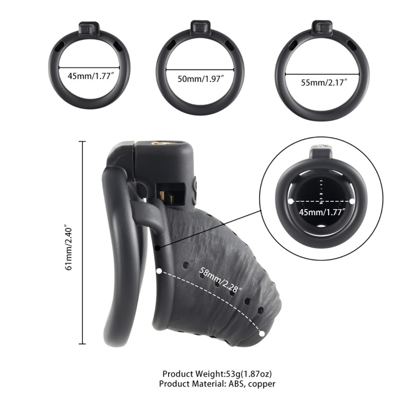 De Sevanda Black Slave Kuisheidskooi Kort biedt een veilige en comfortabele pasvorm met zijn robuuste ontwerp. Gemaakt van hoogwaardig ABS en koper, zorgt deze kuisheidskooi voor duurzaamheid en langdurig gebruik. De kooi heeft een strakke zwarte afwerking en wordt geleverd met drie verschillende ringmaten om de perfecte pasvorm voor jouw behoeften te garanderen. Het geventileerde ontwerp bevordert hygiëne en comfort voor langdurig dragen.