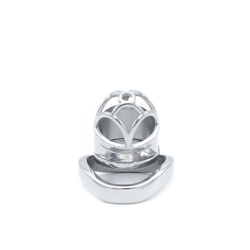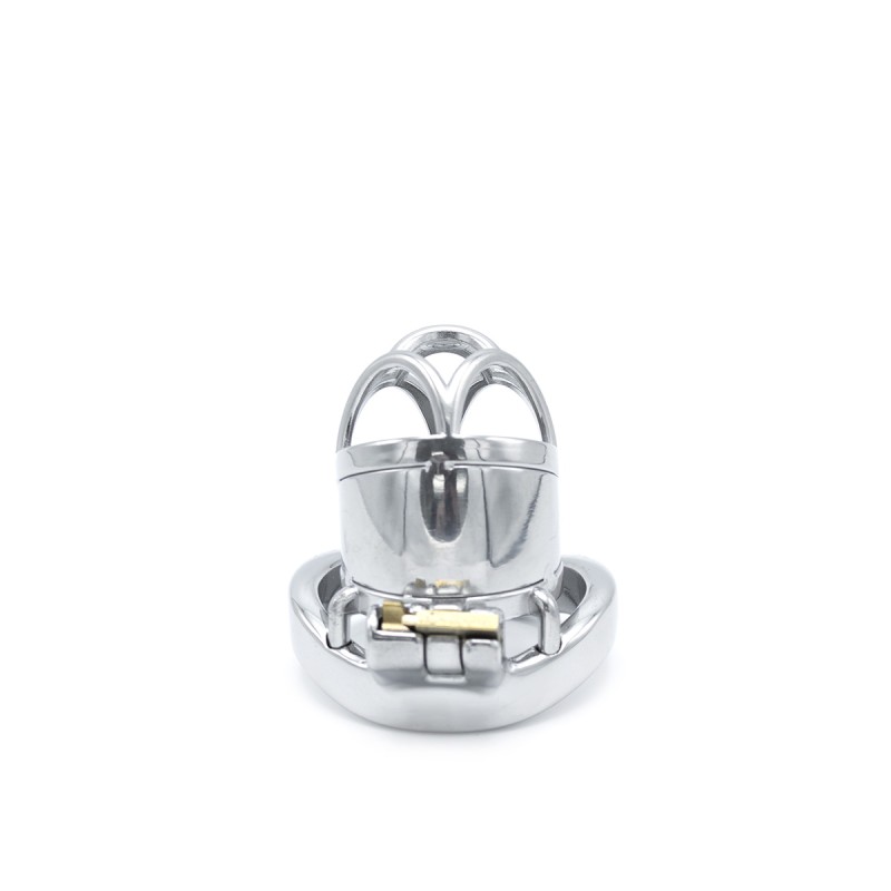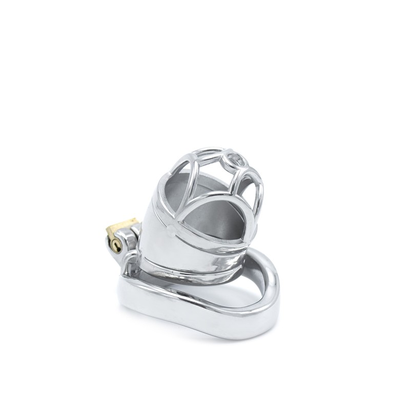 Houd je pik achter slot en grendel met deze echte stalen kuisheidskooi. Deze kleine korte kuisheidskooi is gemaakt van roestvrij staal. Sluit je lul op in dit prachtige futuristische apparaat. Plaats uw penis in de kooi met een inbrengmaat van ongeveer 4.2 cm.