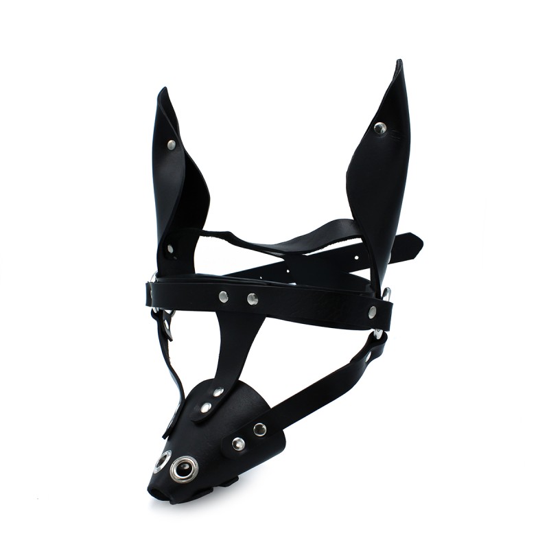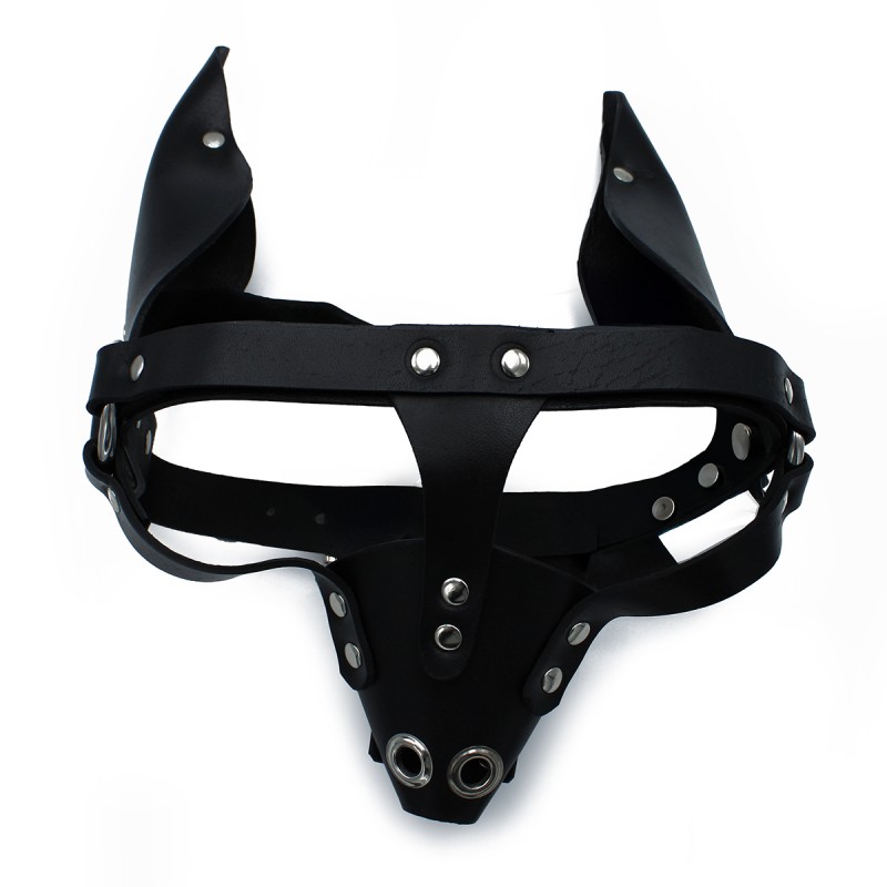 Black Leather Dog Mask with Ears & Snout