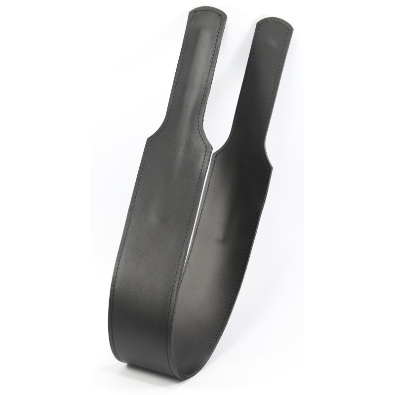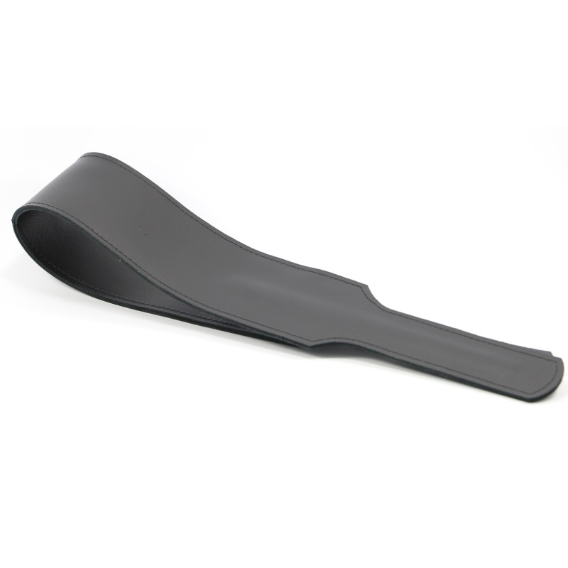 Disciplineer je slaaf met deze hoogwaardige zwarte paddle, met een dubbele laag stevig leer voor extra impact. Ontworpen voor hete, intense disciplinaire sessies, maakt deze paddle ondeugende, sexy spanking nog aangenamer. Het dubbelgelaagde ontwerp voegt duurzaamheid en extra gewicht toe voor een bevredigende ervaring.