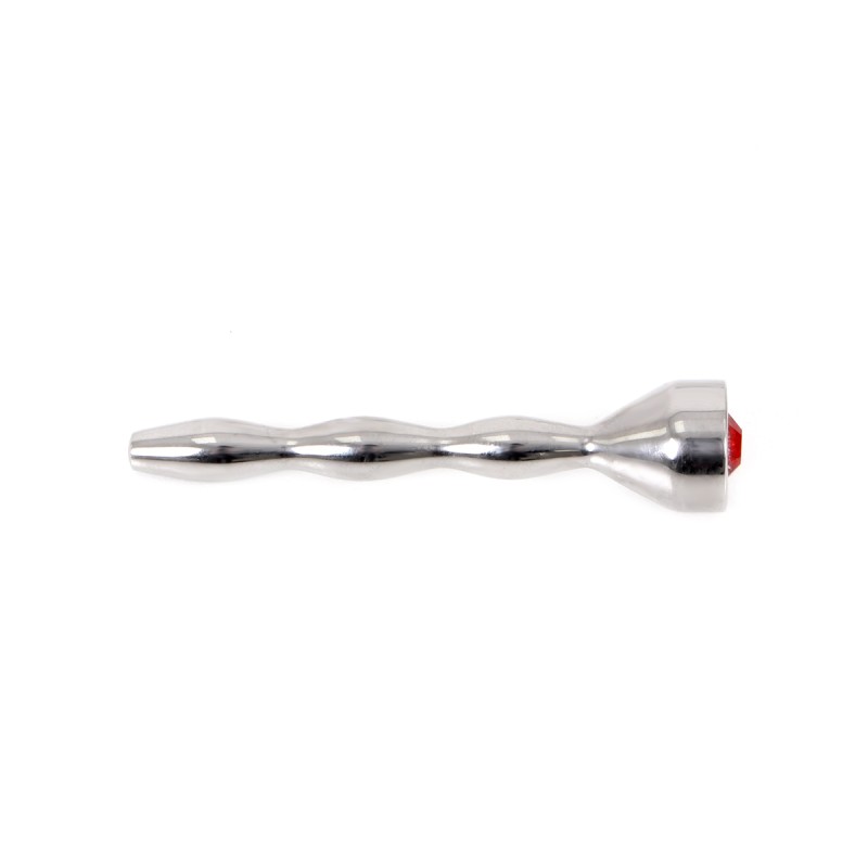 Deze solide penisplug is perfect voor degenen die al wat meer ervaring hebben met penispluggen. Het unieke golfontwerp en de rode steen maken dit een echt opvallend speeltje. Blijf duwen tot je niet meer kunt, en wanneer je dicht bij je orgasme bent, zorgt de plug ervoor dat je ejaculaat vast blijft zitten in je schacht voor een intense sensatie.
