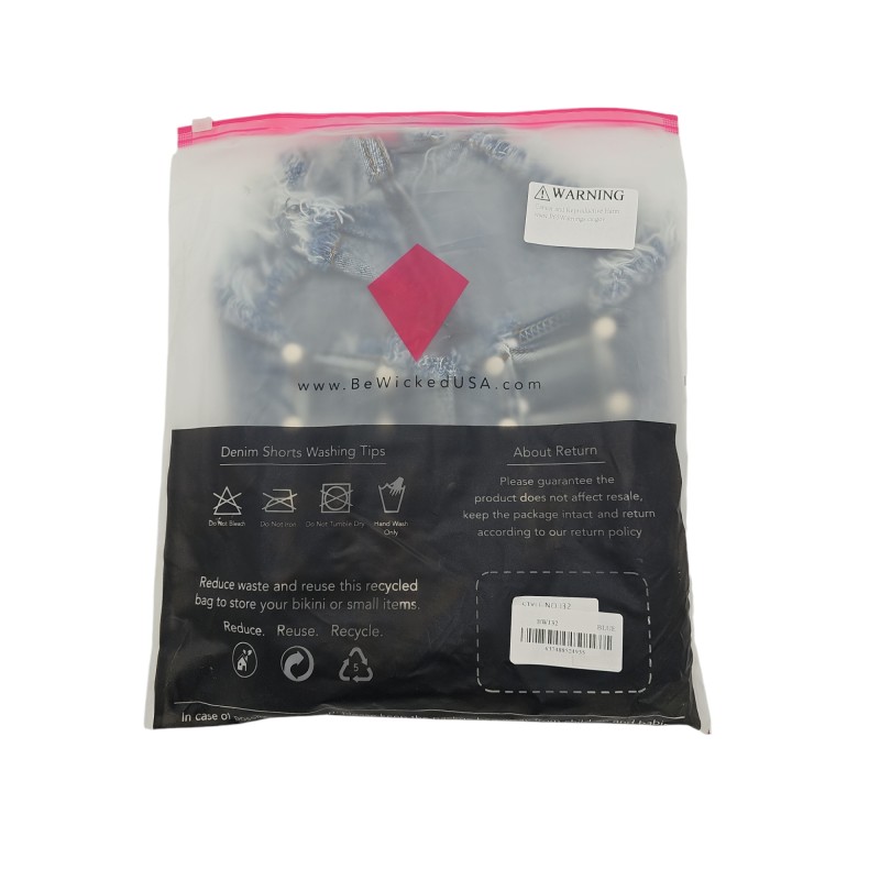 Verpakking: Be Wicked polybag verpakking met UPC-stickers