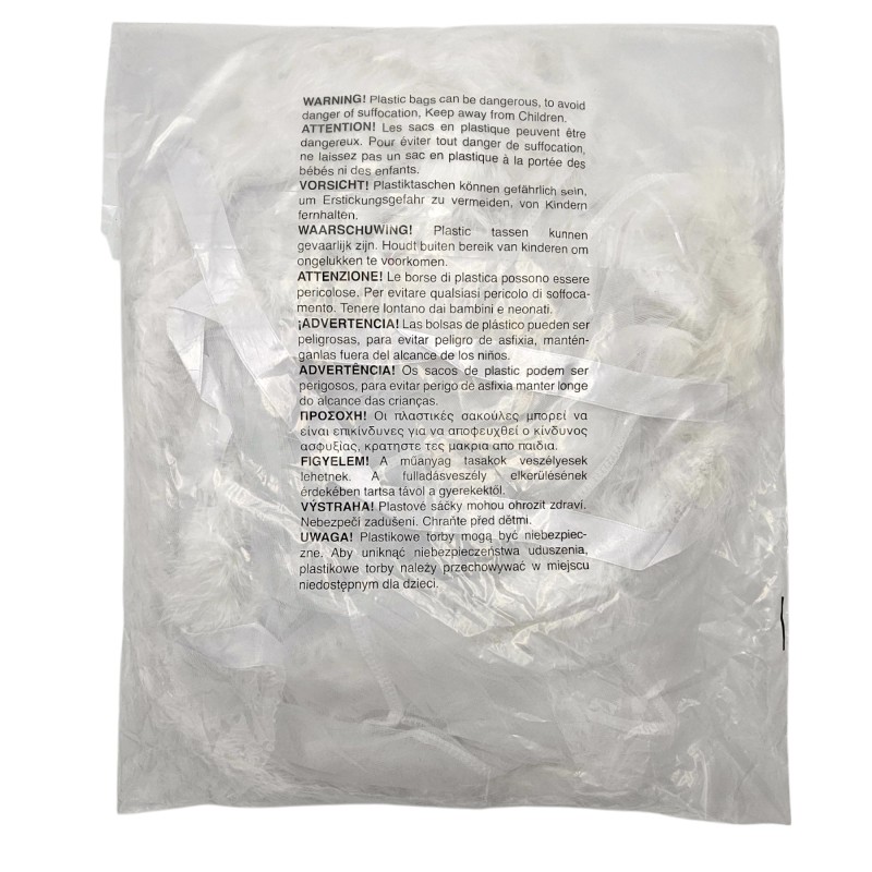 • Satijnen lint dat aan de voorkant gestrikt wordt