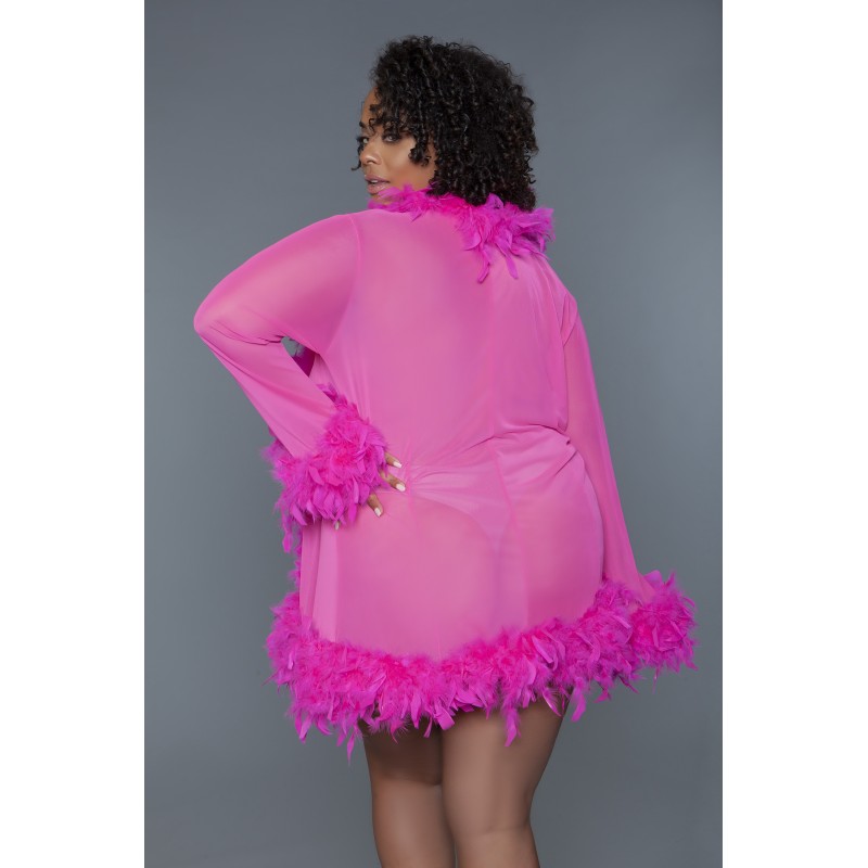 De luxueuze korte chiffon kimono met veren boa-afwerking is een speels maar elegant kledingstuk dat het luchtige van chiffon combineert met de speelse aantrekkingskracht van een veren boa-afwerking. Deze kimono is ontworpen voor degenen die graag een vleugje glamour en plezier aan hun loungewear toevoegen.