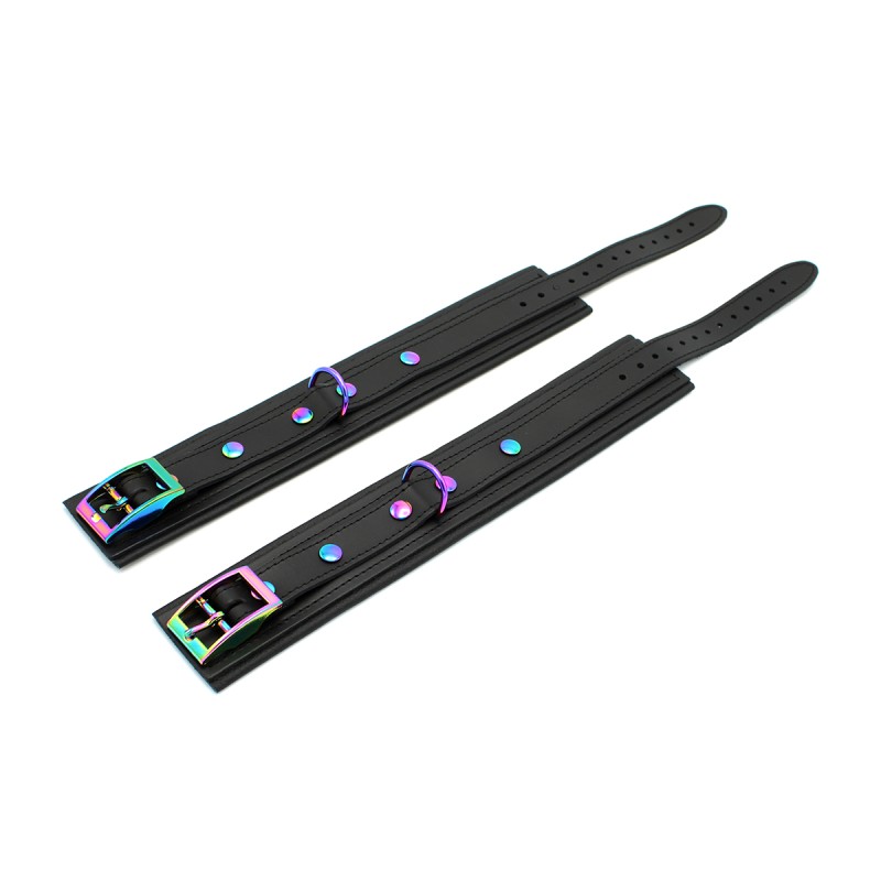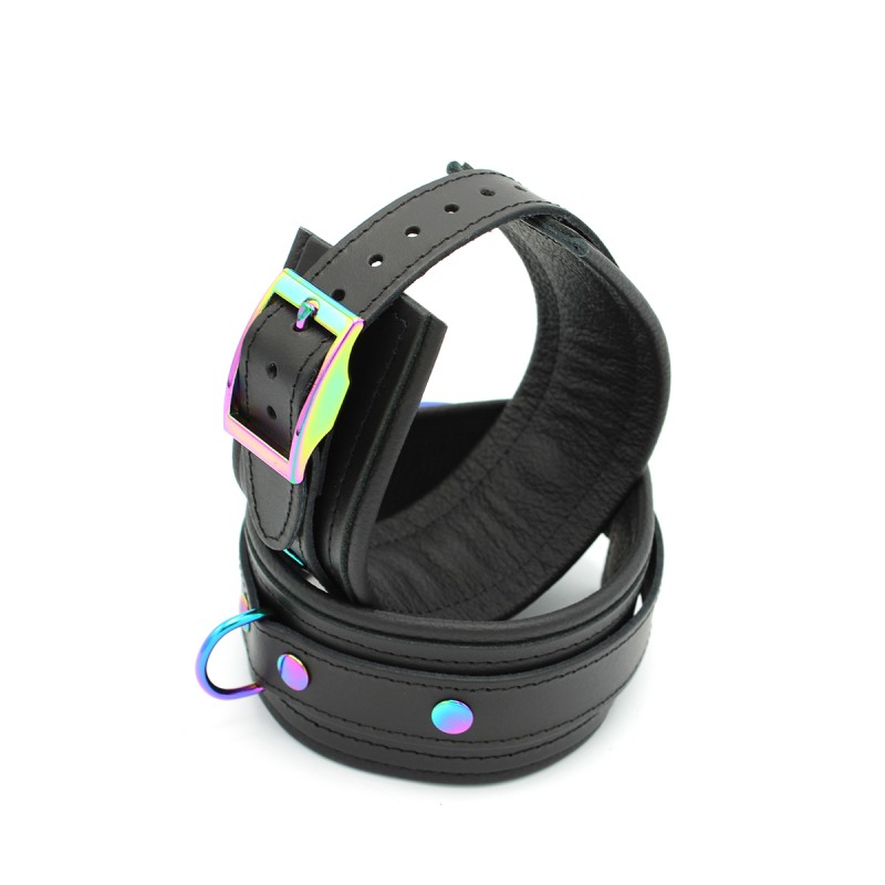 Breng stijl en comfort naar je spel met de leren enkelboeien zwart regenboog. Gemaakt van duurzaam zwart leer en gewatteerd met zacht leer, bieden deze enkelboeien een veilige maar comfortabele pasvorm. Het strakke zwarte design met regenboogaccenten maakt deze boeien tot een opvallende toevoeging aan elke collectie. Verstelbaar om bij verschillende enkelmaten te passen, combineren ze functionaliteit met een unieke en gedurfde uitstraling.