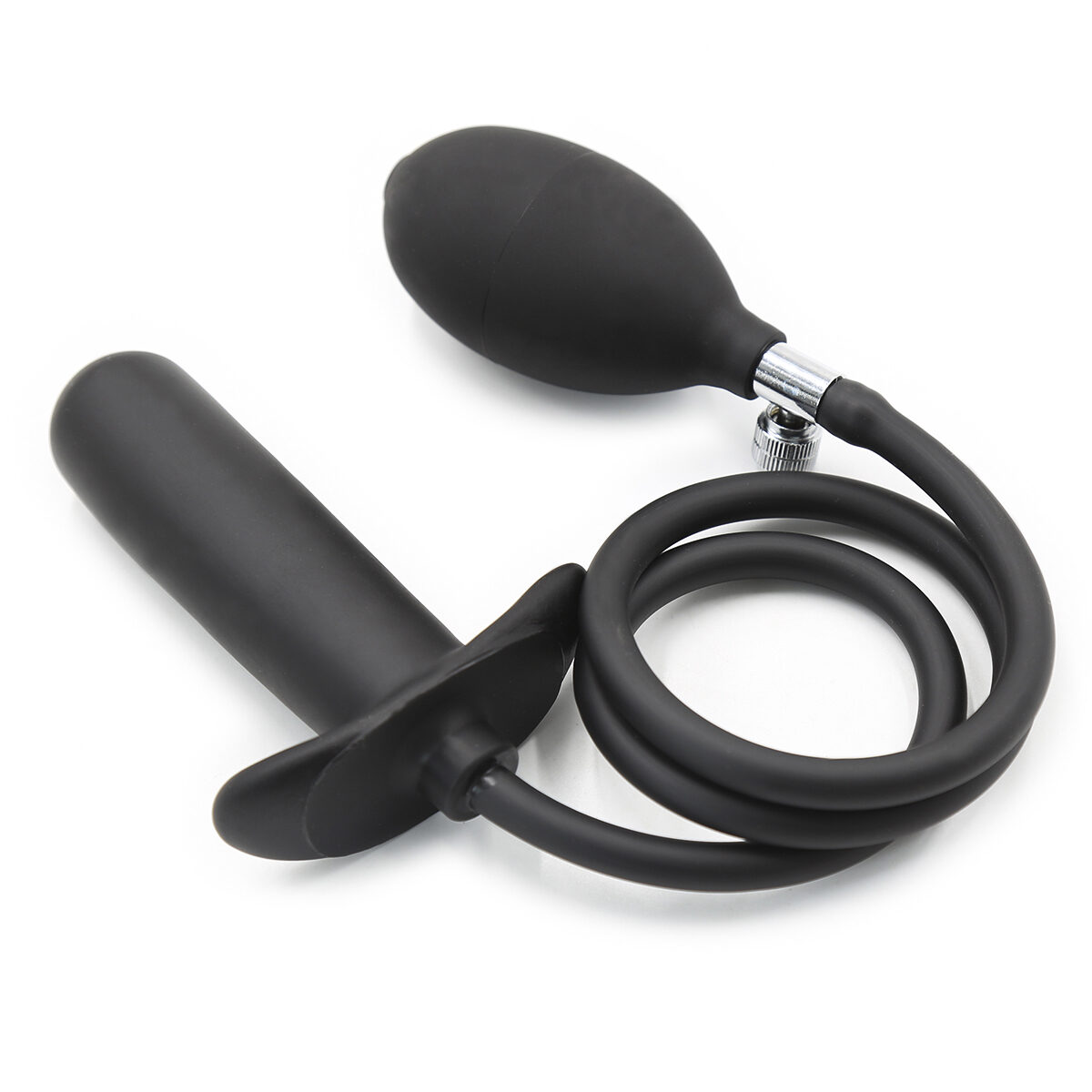 The Black Inflatable Smooth Dildo is designed for comfort and gradual fullness, featuring a sleek surface for easy insertion. After insertion, you can use the hand pump to slowly inflate to the size you prefer, or pre-inflate to explore new sensations. The hand pump includes a pressure relief valve for safe deflation; simply turn the valve open to release air as needed.