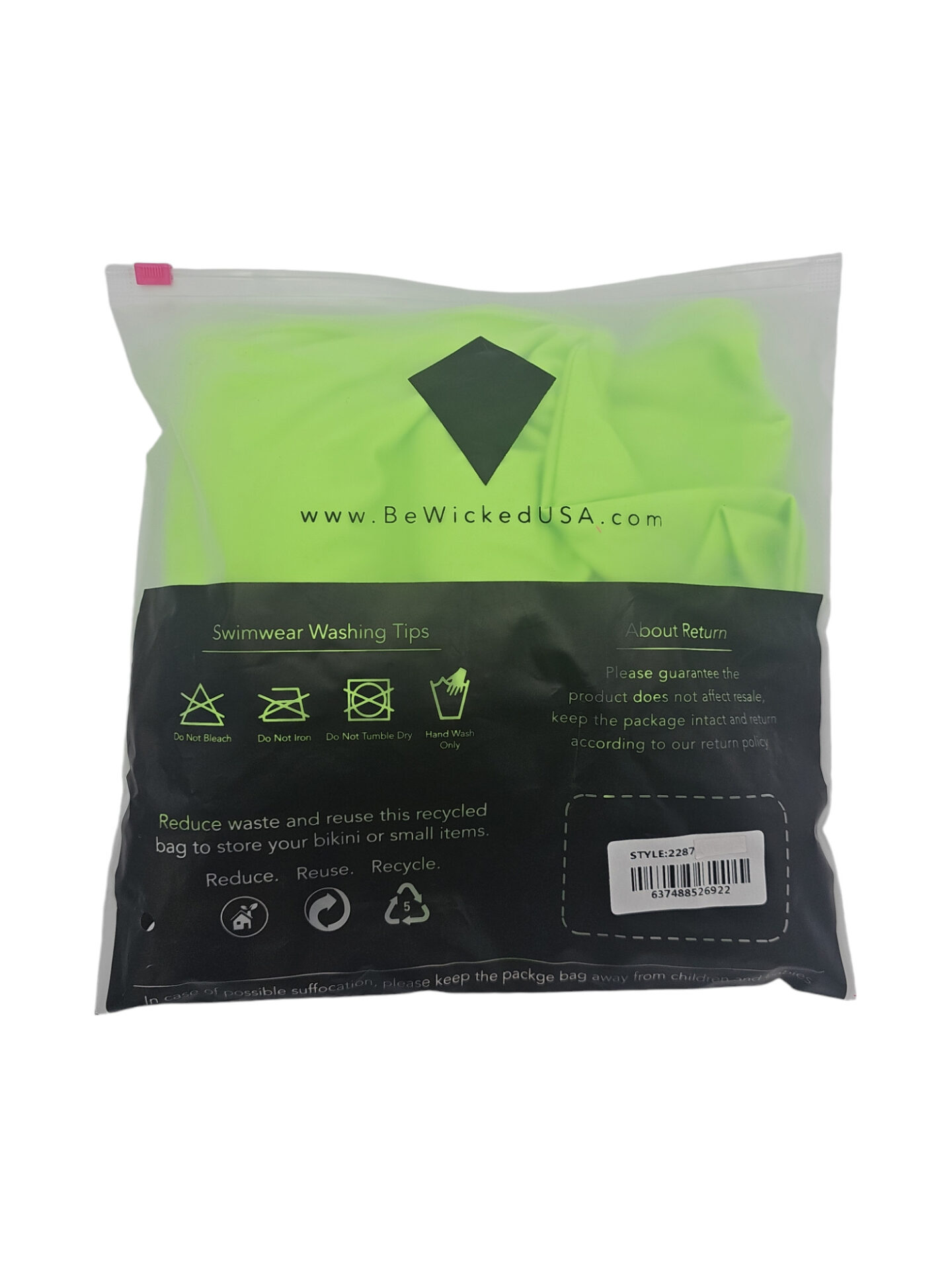 A breezy elegance of coastal style, this neon green, small-sized Shay swim set is both fashionable and versatile. Designed for the modern woman who appreciates a blend of sophistication and comfort, featuring a unique one-shoulder tankini top that sets a new standard for beachwear elegance.