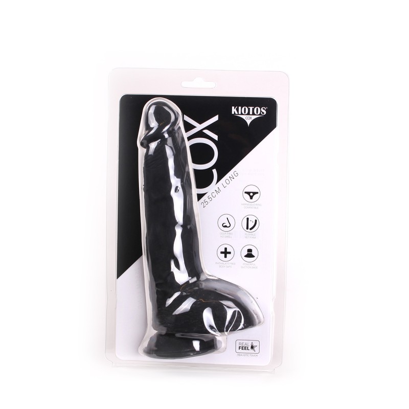 De speciale vorm van de zuignap maakt dat deze Kiotos Cox dildo te combineren is met alle standaard maat O-ring strap-on harnassen.