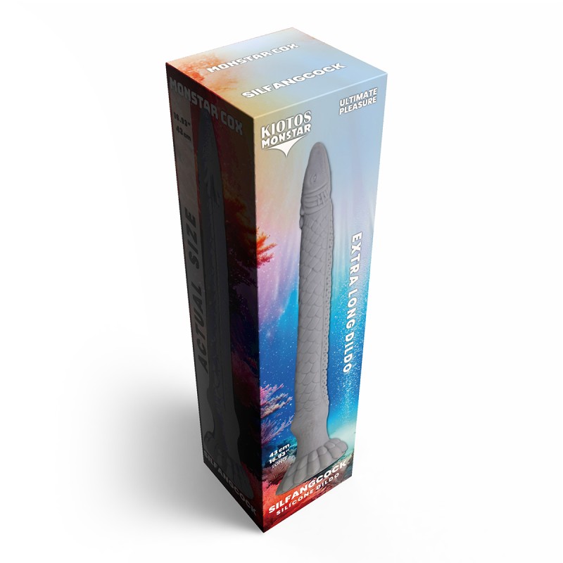 Dompel je onder in een waterwereld van fantasie met de Monstar Cox SilfangCock, een indrukwekkend lange, vis-geïnspireerde dildo ontworpen voor diepe en intense sensaties. De gedetailleerde schubstructuur, het gevormde vissenkopje en de unieke vinvormige basis zorgen voor een opvallende uitstraling en prikkelende stimulatie. Gemaakt van hoogwaardig, lichaamsveilig siliconen dat stevig en zijdezacht aanvoelt, ideaal voor avontuurlijk gebruik.
