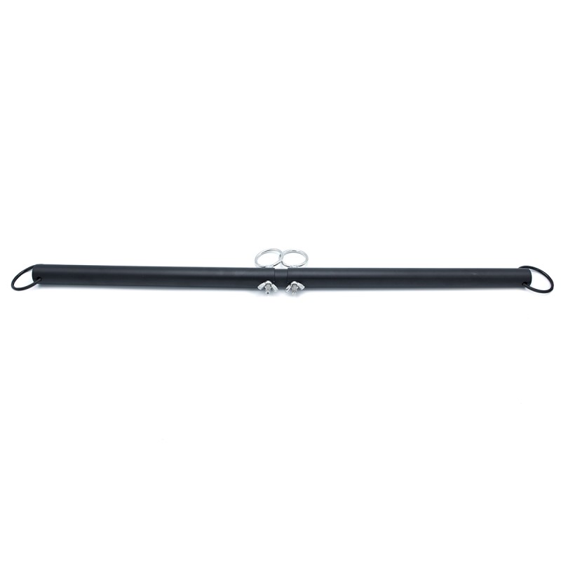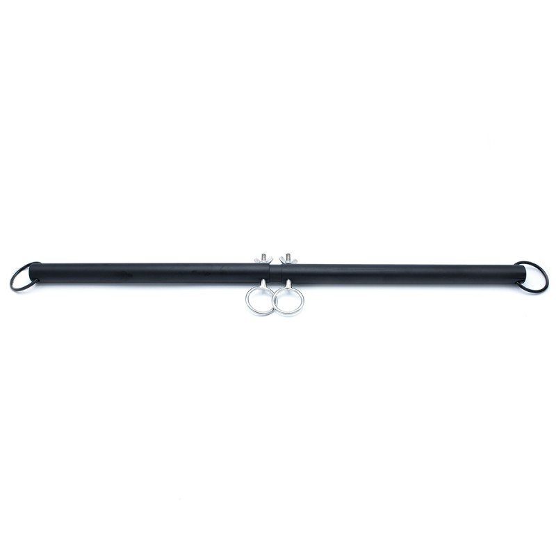 Deze zwarte verstelbare spreidstang is een essentieel bondage-accessoire, perfect voor liefhebbers van BDSM en restrictiespel. Gemaakt van roestvrij staal met een zwarte coating, biedt het een stoere uitstraling en stevige fixatie. Met vier stevige ringen kun je eenvoudig handboeien en enkelboeien bevestigen.