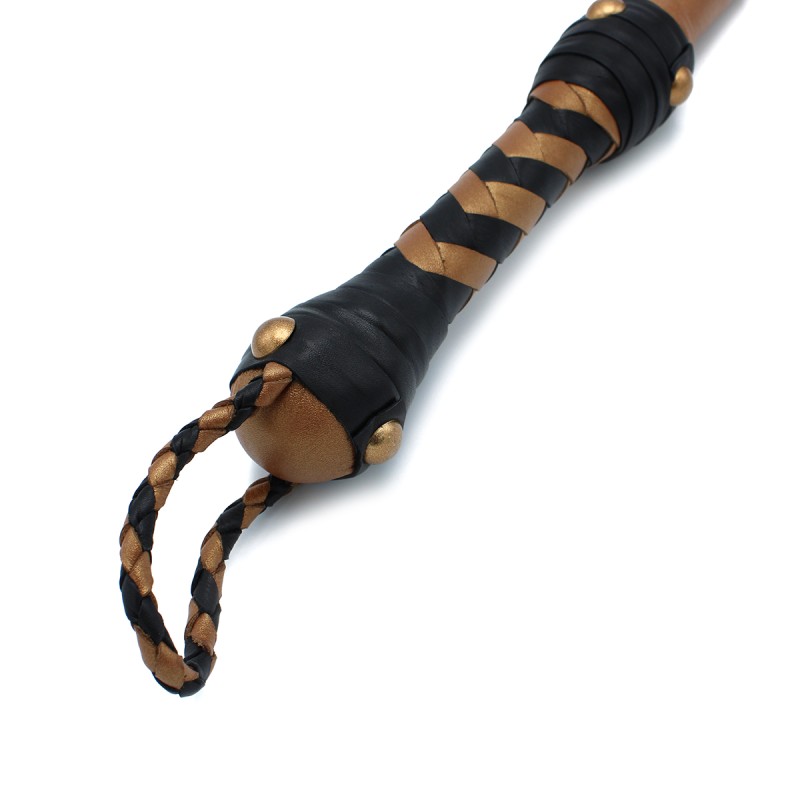 De langere lengte biedt uitstekende reikwijdte, waardoor diverse technieken mogelijk zijn, van lichte plagerijen tot stevigere slagen. Het stevige handvat zorgt voor een veilige grip, terwijl de unieke bronzen kleur een koninklijk tintje toevoegt waardoor het een opvallend stuk wordt in je collectie.