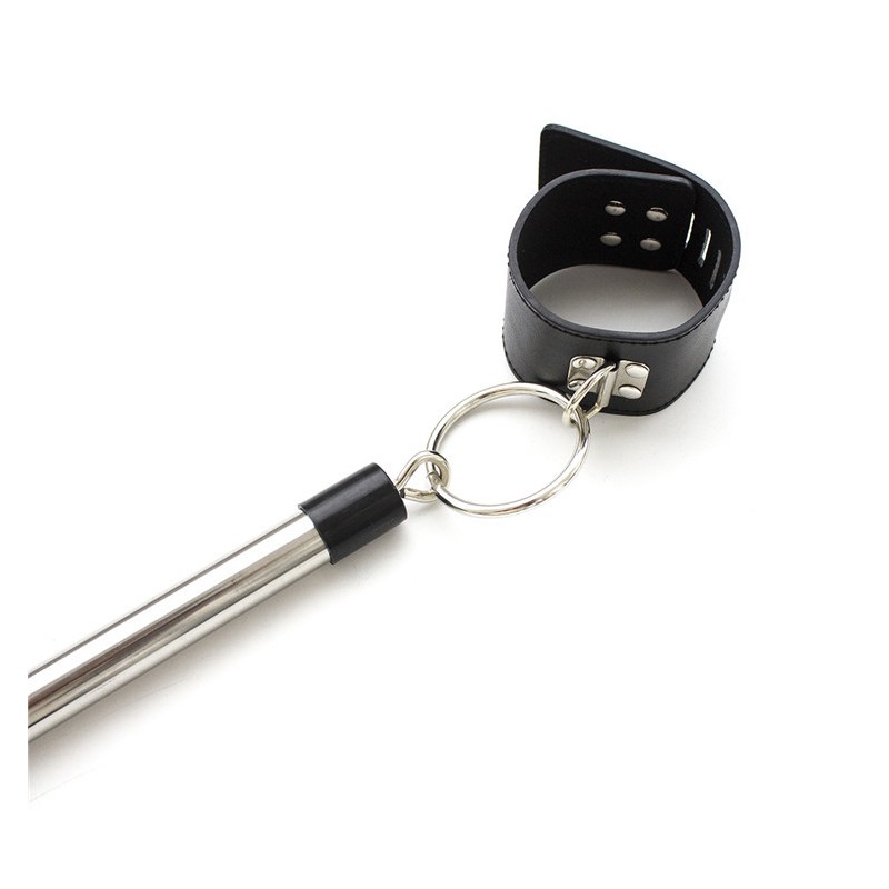 Houd de voeten van je partner gespreid en onder controle met deze 50 cm BDSM Spreidstang, uitgerust met zwarte PU-leren boeien. De boeien zijn verstelbaar en passen om enkels met een omtrek van 19 cm tot 26 cm, waardoor een comfortabele maar stevige beperking wordt gegarandeerd. De duurzame metalen stang zorgt ervoor dat de voeten stevig gespreid blijven, wat extra intensiteit toevoegt aan je bondagesessies.