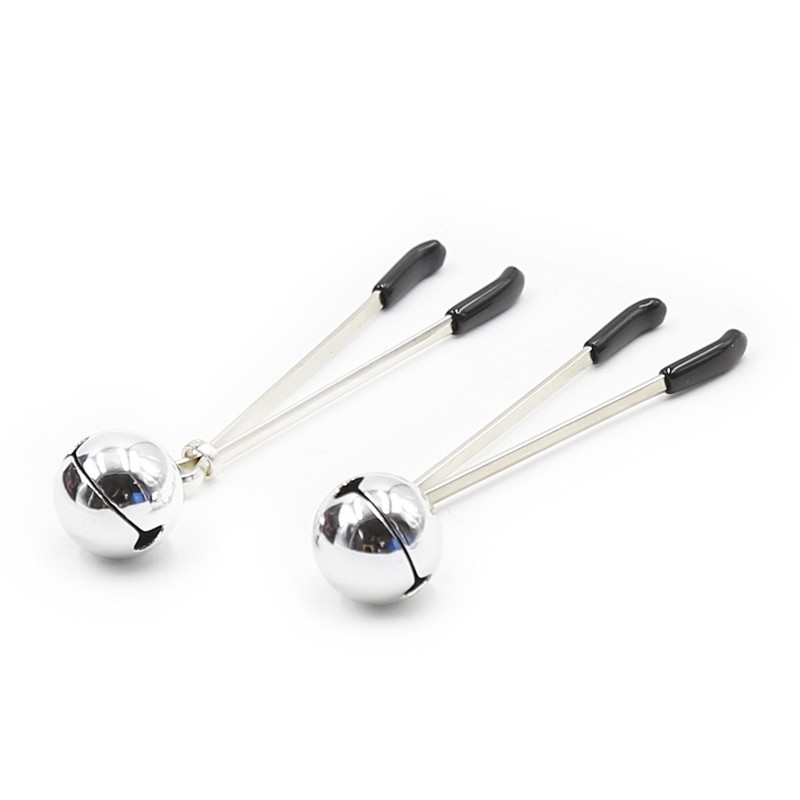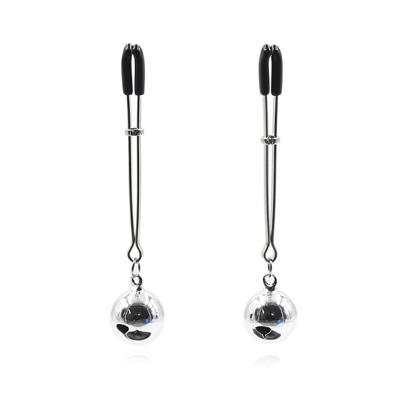 Deze tepelklemmen zijn voorzien van een klein rond belletje, waardoor ze zowel functioneel als decoratief zijn. Ze passen perfect om je harde tepels en voegen een speelse spanning toe aan je rollenspel. Het klingelende belletje kondigt je aanwezigheid aan, zodat ontsnappen onmogelijk is. Deze klemmen dienen als sierlijk juweel, en de extra stimulatie maakt je tepels nog harder. Een perfecte toevoeging aan je collectie van sensuele accessoires. (Geleverd in een plastic zakje)