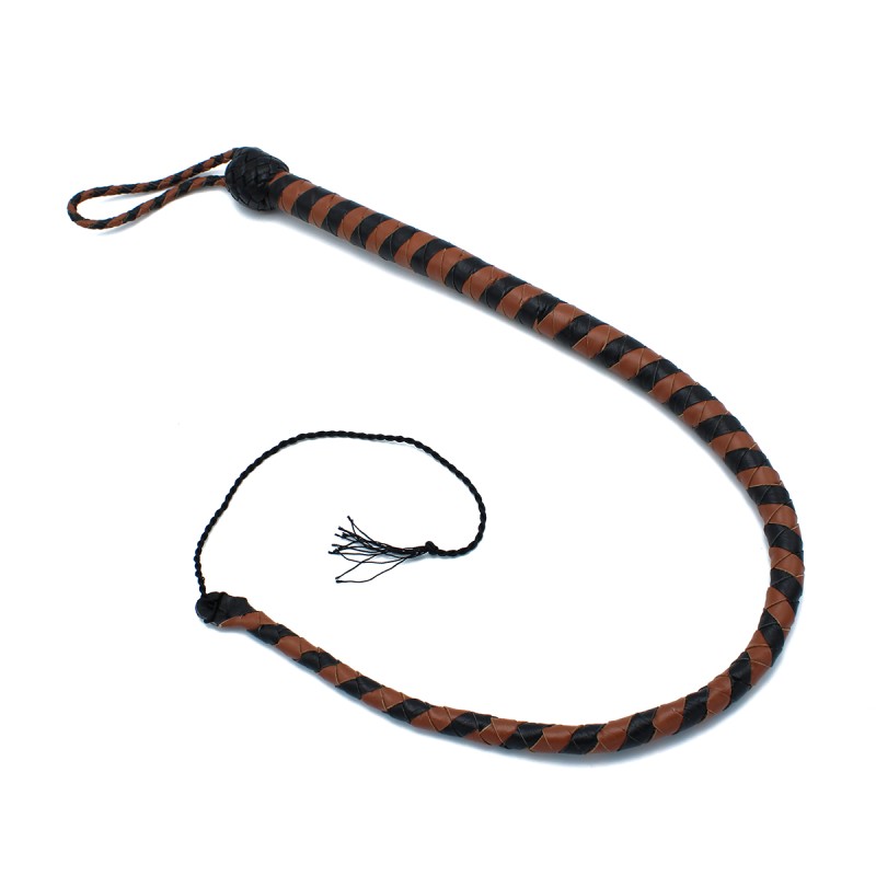De Leren Zweep Zwart & Bruin biedt een strak ontwerp en uitstekende veelzijdigheid voor impactspel. Gemaakt van duurzaam zwart en bruin leer, meet deze zweep 90 cm in lengte, wat het ideaal maakt voor gecontroleerde en nauwkeurige slagen.
